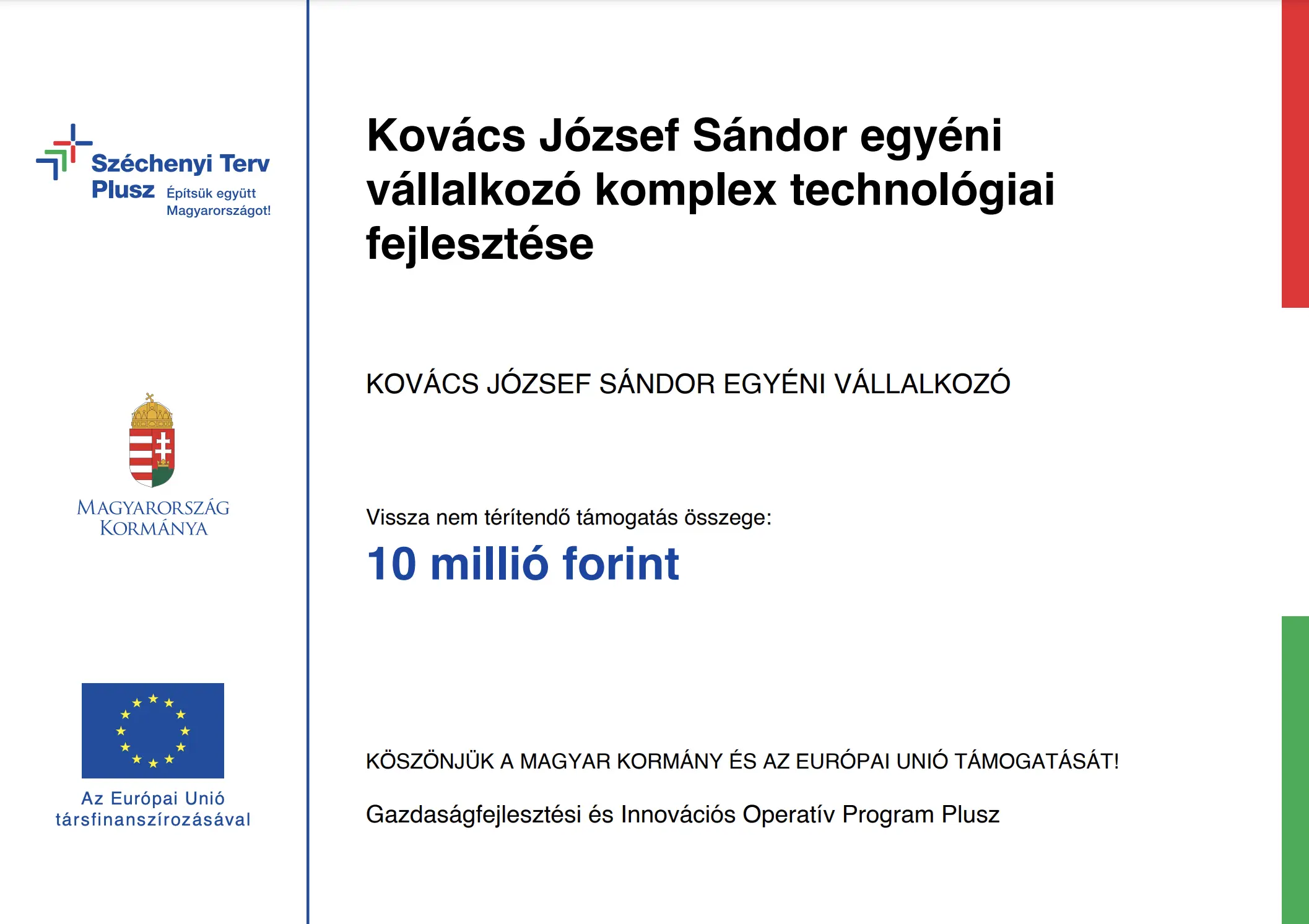 A fejlesztés tárgya, célja: Kovács József Sándor egyéni vállalkozó komplex technológiai fejlesztése